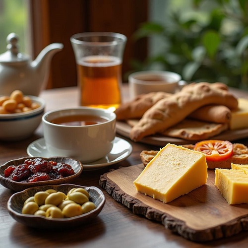 Doğu Anadolu’nun bereketli topraklarından sofranıza… Kars’ın meşhur kaşar peyniri, gravyer, organik köy tereyağı ve süzme ballarıyla hazırlanan serpme kahvaltımız tamamen organik ürünlerden oluşuyor.